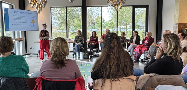 Hoe ga je om met emoties als stress, frustratie of spanning? Susan liet zien dat emoties juist je bondgenoot kunnen zijn, als je ze durft te herkennen en te gebruiken. Met praktische oefeningen en herkenbare voorbeelden ontdekten de deelnemers hoe zelfkennis helpt om stevig en veerkrachtig in het leven te staan. Leren omgaan met emoties werd zo een leerzame én bevrijdende ervaring.